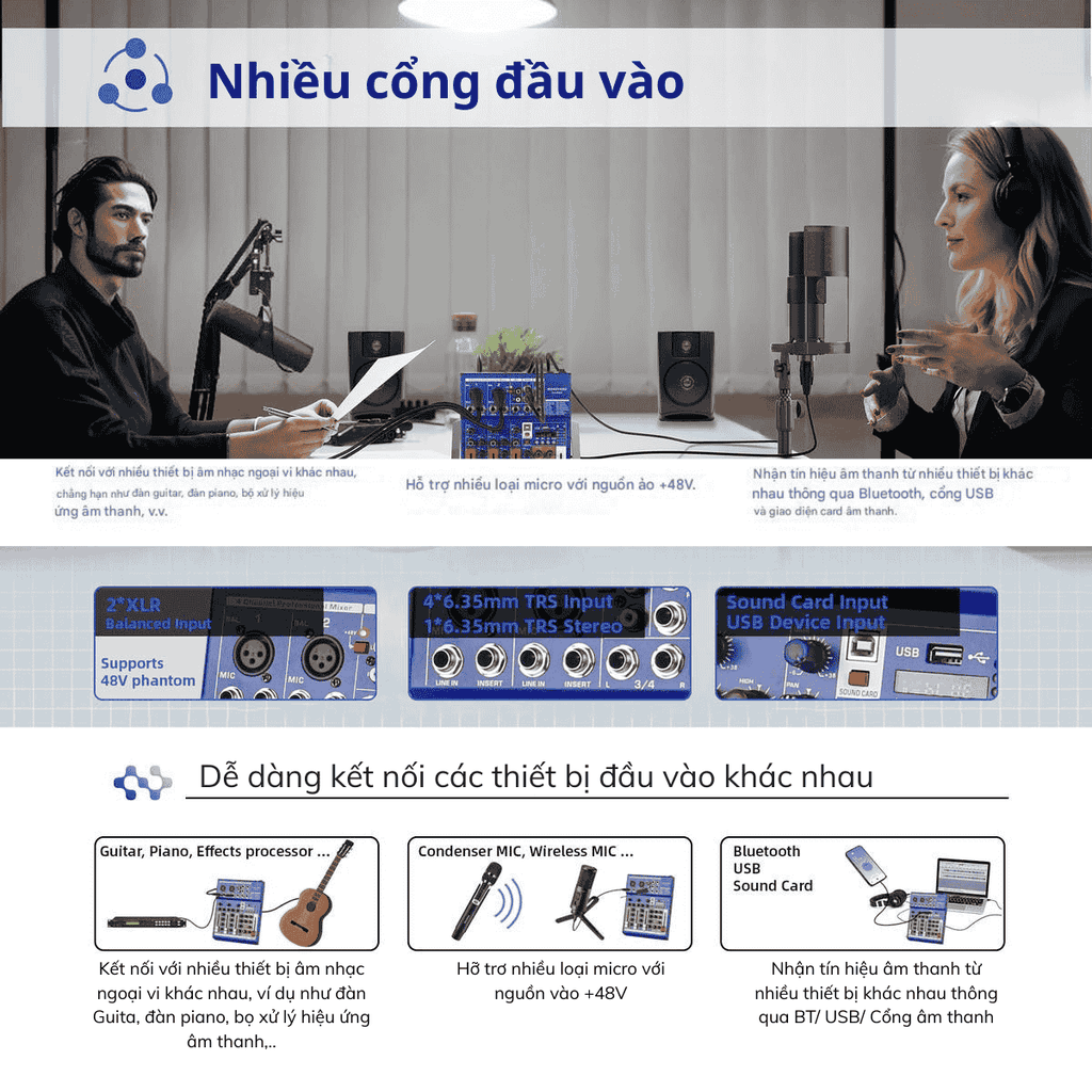 🔹 Kết nối USB: 💻 Sound Card tích hợp – cắm là dùng