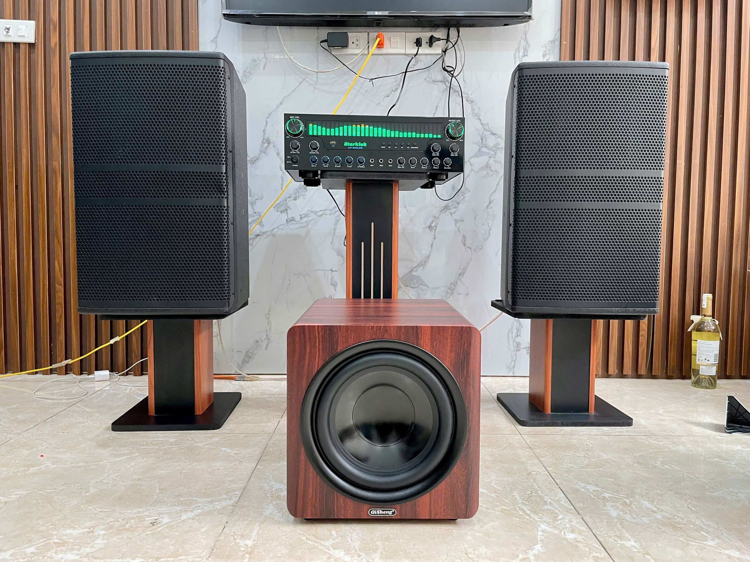 - Công suất liên tục 100W (Peak 150W) dư sức làm rung chuyển không gian phòng từ 50 - 150m², phù hợp cho cả xem phim và hát karaoke.